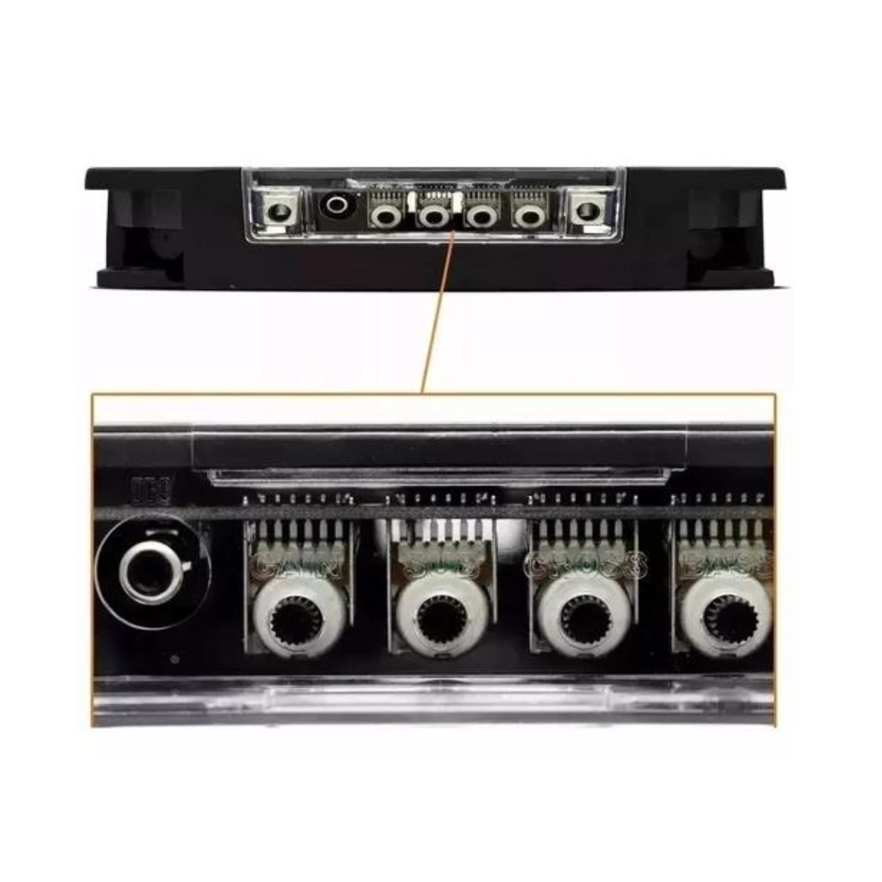 – LED Vermelho Indicador de Distorção na Saída (Clipping), Curto Circuito e Proteção Térmica